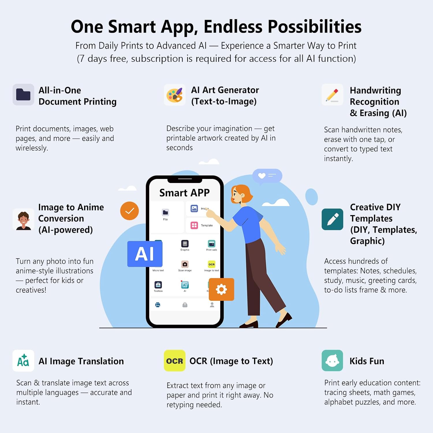 • Ultra-Portable Design - This printer measures 1.7’’ x 10.4’’ x 2.9’’, Weighs 1.75LB. Perfect for on-the-go printing during travels, work, or university, it easily fits into backpacks or briefcases. Ideal for emergency scenarios, contracts, office documents, and more.