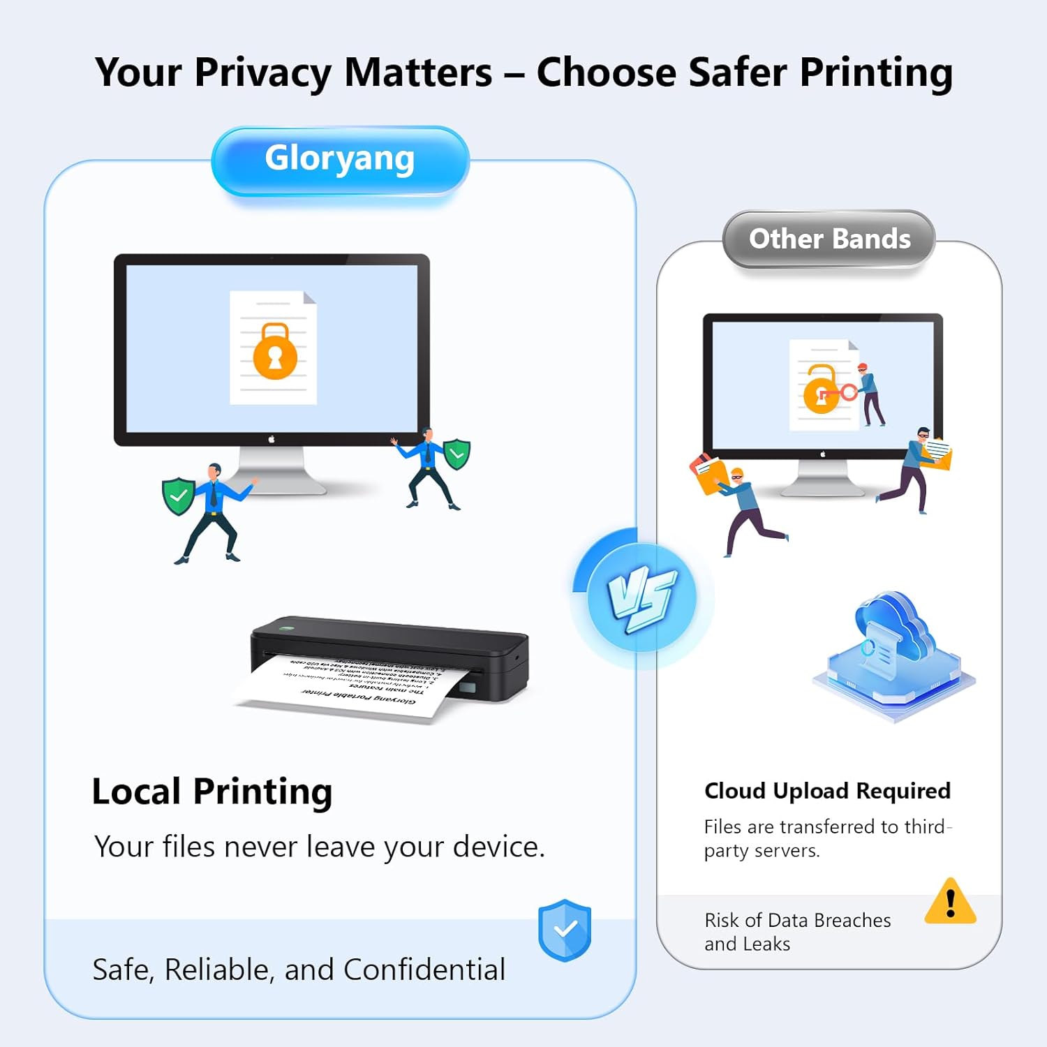 • Seamless Bluetooth Connectivity - The Gloryang mobile sticker printer effortlessly connects to iOS & Android devices via Bluetooth. It also serves as a compact printer for laptops and computers. Simply download the app ''Jadens printer'' for smartphone printing and install the driver for laptops. Connects via USB cable when you use a computer to print. Print anytime, anywhere.