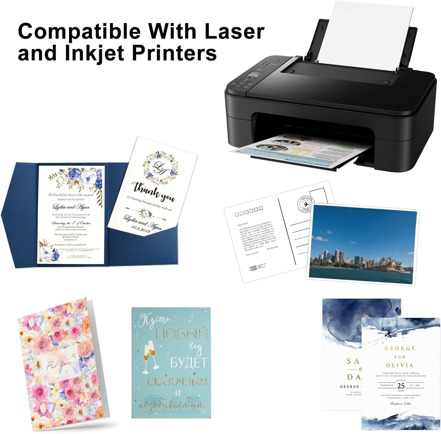 • 【Versatility】:Normal for inkjet printers, laser printers, and copiers (refer to the printer manual before ordering to ensure that you can print on 92 lb cover/250 gsm paper).