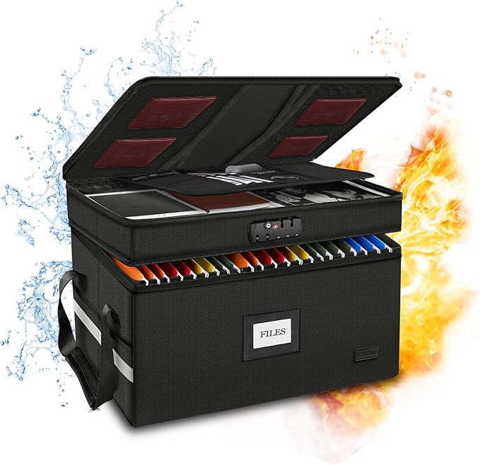 • [Portable Fireproof Storage Box] Compared with other file box, our fireproof file boxes with handles are lighter. Choosing this portable file box means that if a disaster occurs, it is easier to move or carry with its sturdy handle if necessary. You can put it in your home, office, car or outdoor activities.The inside of the file storage box is supported by PP material, which is not easy to deform, so you can easily fold or stack multiple boxes together