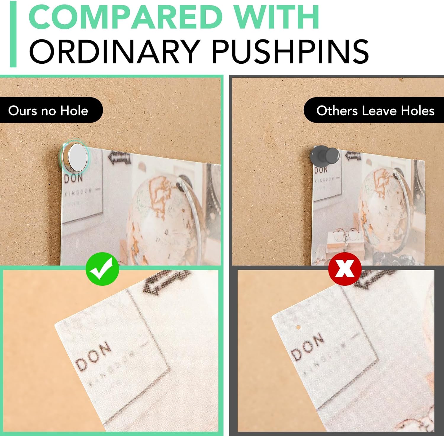 • 【Wide Applications】: Magnetic push pins can be used in offices, classrooms, living rooms, dining rooms, bedrooms, and other places. The decorative tacks for wall can be used on cork boards, foam boards, bulletin boards, whiteboards, and other technological materials with magnetic surfaces. It is very convenient to fix and hang maps, calendars, photos, notes, posters, etc.