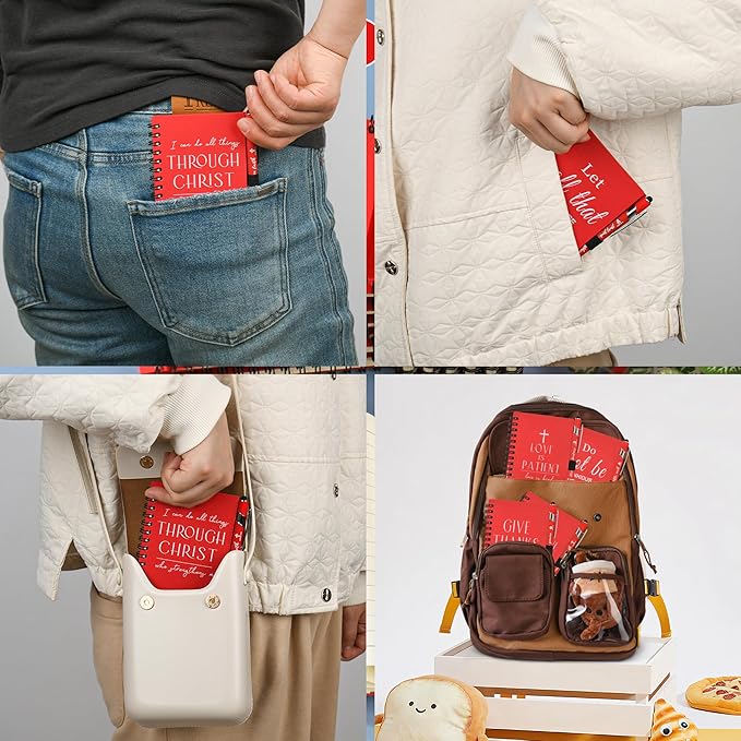 • Product Information: The compact and small notebooks size is 4.13 x 5.43 inches / 10.5 x 13.8 centimeters, making it easy to fit into pockets, handbags, or car glove compartments,It's perfect for jotting down devotional thoughts, Bible verses, or sermon notes, and ideal as a small gift in gift bags or as table gifts