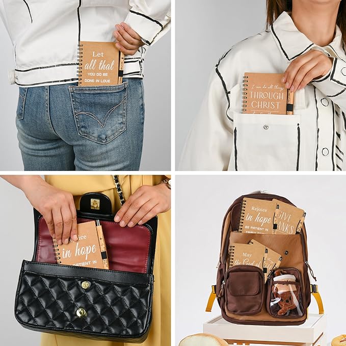 • Product Quantity: You will receive 30 sets of christian journal and Christian pens, featuring uplifting Bible verses printed on them. Each collection includes 10 different designs of christian journal and 10 styles of Christian pens, totaling 30 sets (30 small journal and 30 Christian pens)