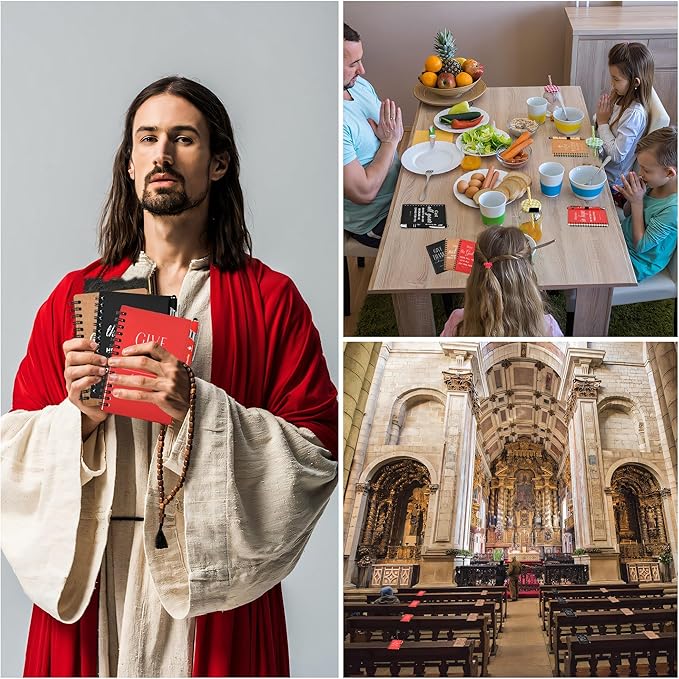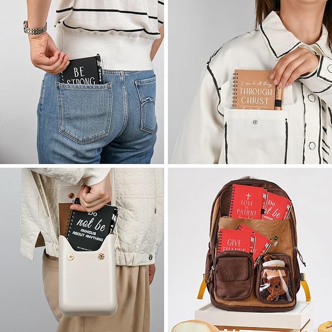 • Product Information: The compact and small notepad size is 4.13 x 5.43 inches / 10.5 x 13.8 centimeters, making it easy to fit into pockets, handbags, or car glove compartments. The pocket notebook features a sturdy cover, 50 inner pages, and Christian pens, making it convenient, practical, and not easy to lose.