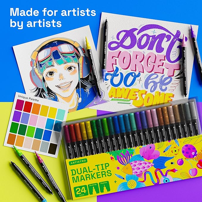 • HIGHLY PIGMENTED MARKERS: Each art pen is equipped with an easily coded pen barrel. The ink inside the artist pens is highly pigmented and spreads easily. The ink in the dual tip marker set is safe, non-toxic, and acid-free.