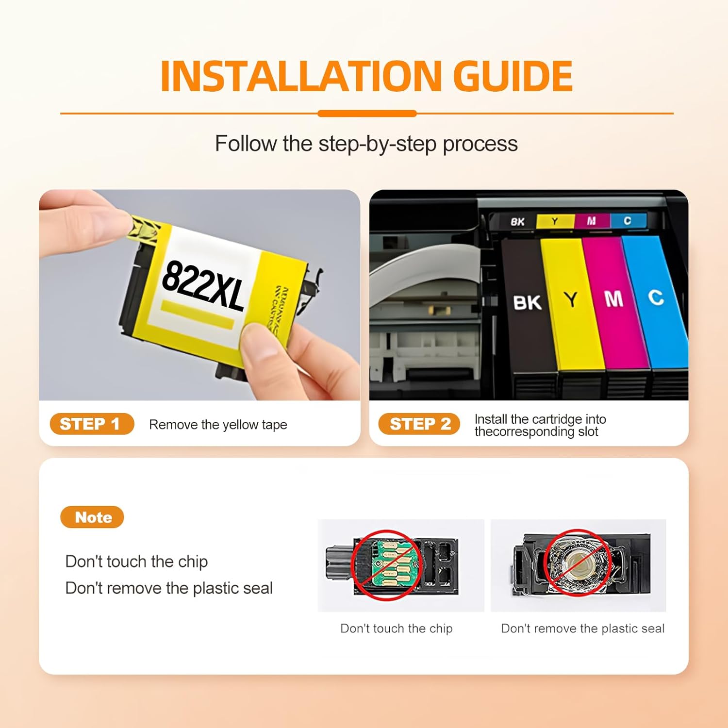 • Quality and Reliable : 822XL black ink cartridges for epson printer with the latest chips passed ISO9001 and ISO14001 quality management system certification. If you have any problem about 822XL ink cartridge,please contact us all time.