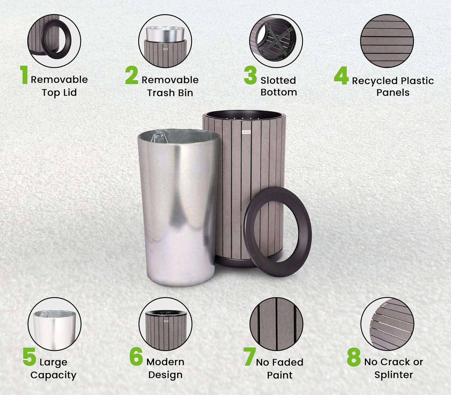 • HIGHLY DURABLE: Built with premium quality materials and recycled plastic grey slates, this garbage receptacle can ensure a long life and hold up against all weather conditions.