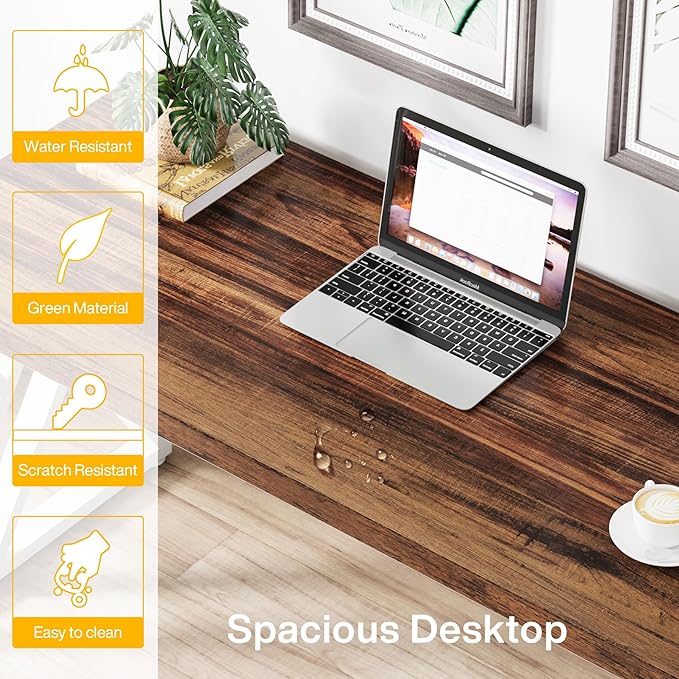 • Spacious Desktop & Leg Room: Measuring 29.52'' H x 55.12'' W x 23.62'' D overall, the large desk surface allows plenty of room for laptop, books, office supplies and paperwork, and the smooth top makes for easy cleanup and writing. Ample space under desk ensures any chair can fit under desk, and allows your legs relax after long day of working