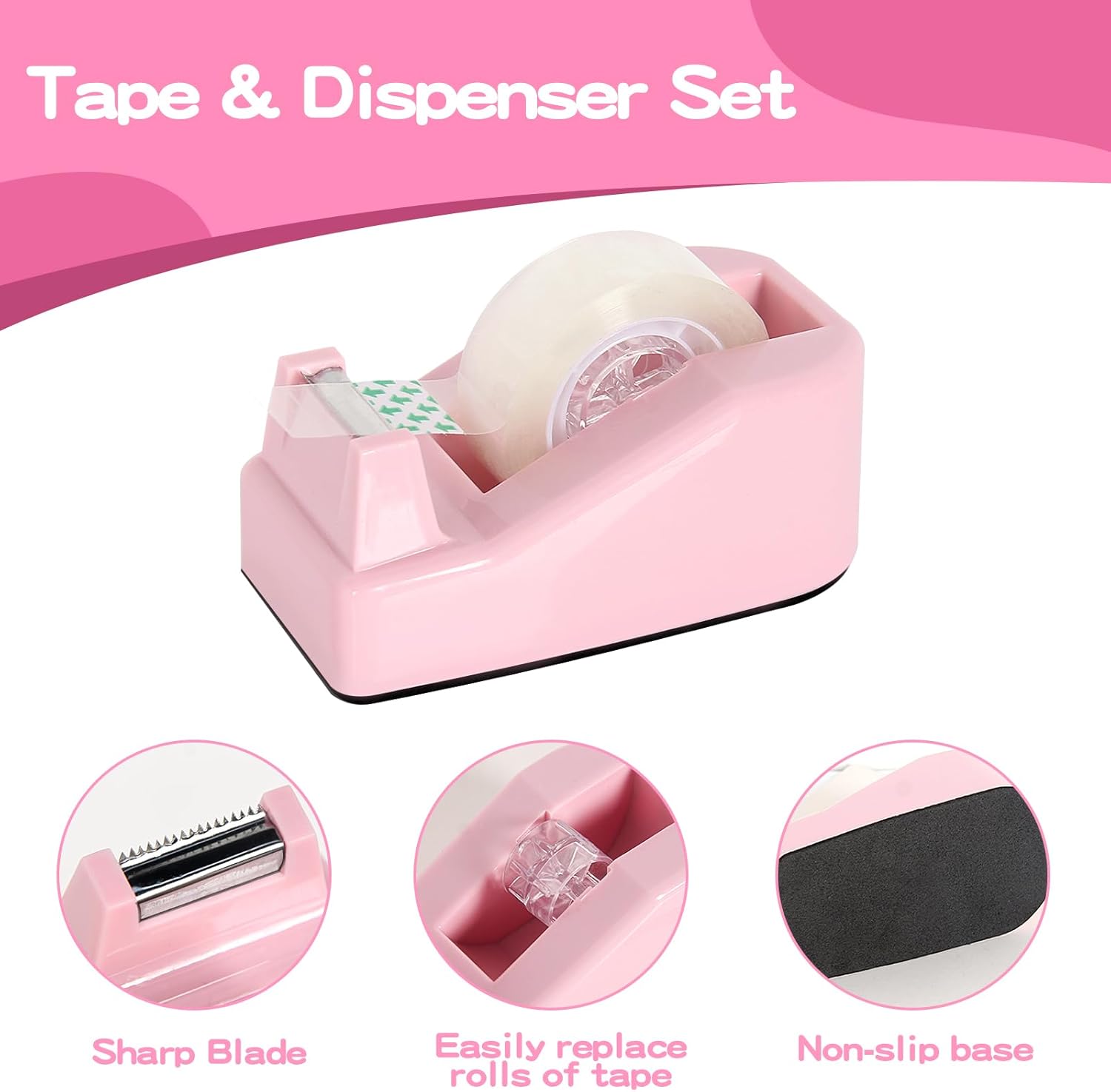 • CUTE & FUNCTIONAL OFFICE ESSENTIALS: Stapler and tape dispenser sets are mainly made of plastic, sturdy and reliable, and not easy to break. With a beautiful appearance, they are ideal for desktop office, home, and daily use.