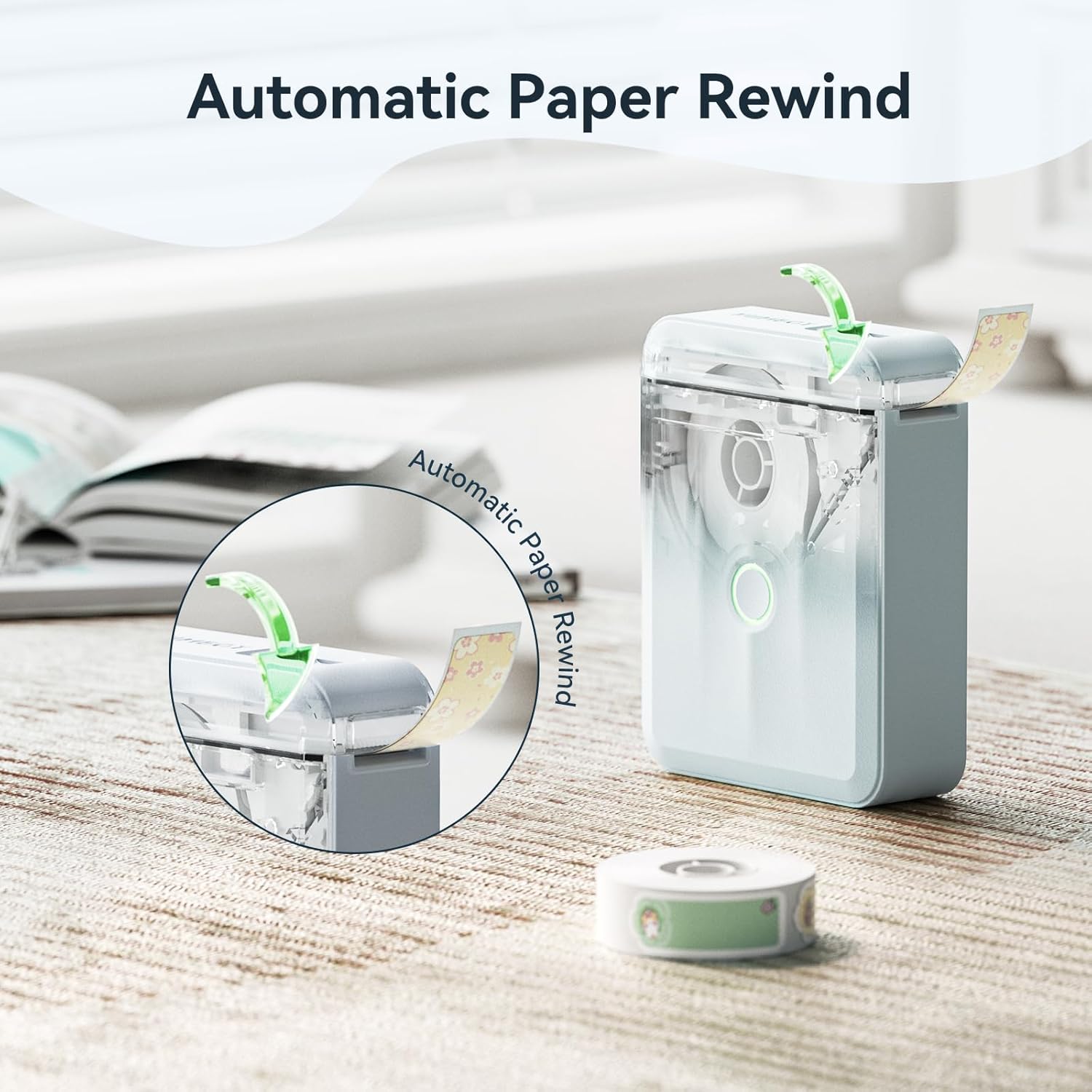 • Smart Label Rewinds: Upgraded the automatic paper rewind positioning function, and the position of the first label is automatically calibrated when the machine is turned on. Effectively avoids printing offset problems and does not waste the first paper and automatic label recognition which helps you save money, time, and effort