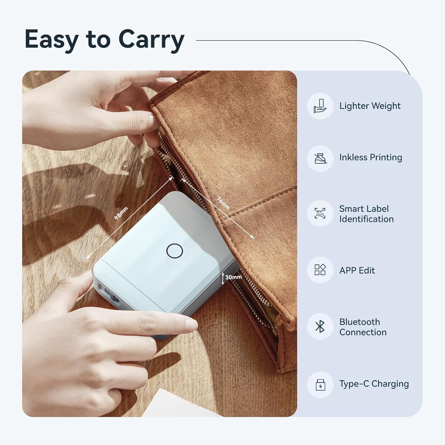 • New Upgrade: NIIMBOT D110 mini bluetooth labeler measuring just 149g. Smaller and smarter than the D110 label maker, experience true and portable mini! Wireless bluetooth label maker can slip into your pocket. The compact and lightweight design makes it easy to carry store, and print labels and stickers anytime, anywhere. Keeps your life and business tidy