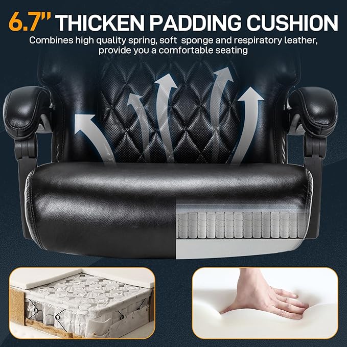 • 【Comfortable Large Office Chair】Large office chair is great for big and tall people. 23.2'' wide and 6.7'' thick spring cushion combines 22.8'' x 28.75'' plus size backrest, very comfortable for you to sit on. Plus breathable design on cushion and backrest, suitable all seasons.