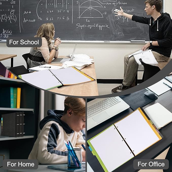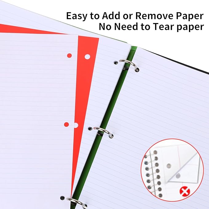 • 【Notebook with Folders】This is a brand-new designed useful and functional binder notebook. This notebook's biggest feature is that the internal paper and dividers can rotate 360 ​​degrees. This college-ruled notebook works like a binder, allowing you to add and remove pages easily. You can fold it back like a spiral notebook and lay flat writing.