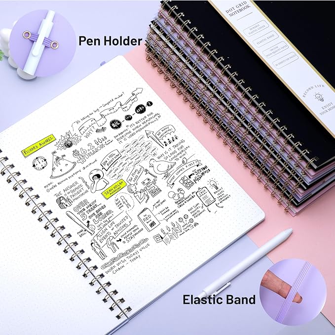 • Upgrade Practical Functions -- We added a pen insert on the cover of the dot journal to prevent pens from falling out. Removable ruler can help you measure and chart. Elastic band keep the cover from opening, saving space when you put it in your bag. Internal pockets store small cards and important note-taking notes.