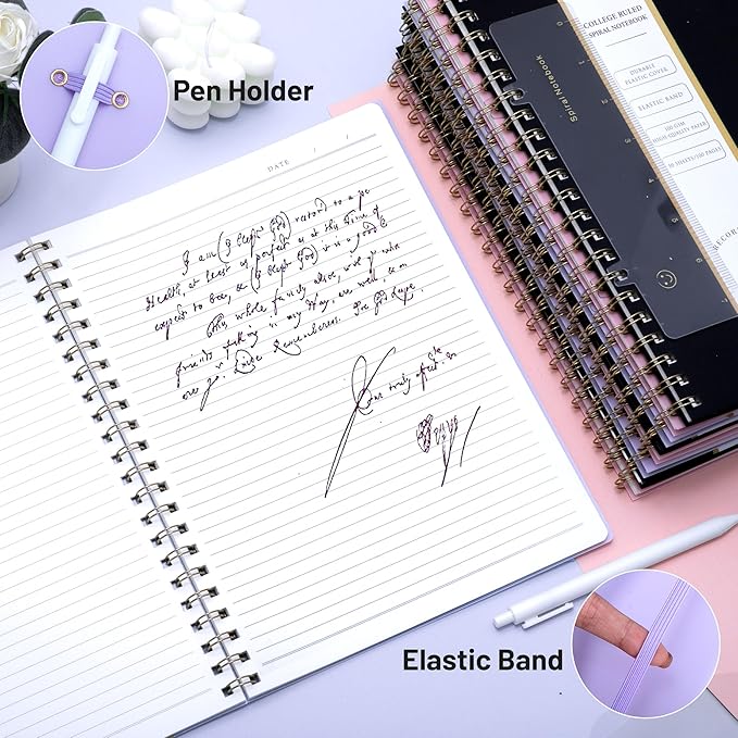 • A4 Lined Spiral Notebook -- The cover of Yoment notebook is made of sturdy, waterproof material that perfectly protects the inner pages of spiral notebook for long-lasting durability. Large spiral notebook size is 8.5 x 11, full size for many occasions. Some people believe that "No design is the best design", the solid color cover and the gold spiral make the spiral journal simple and good-looking.