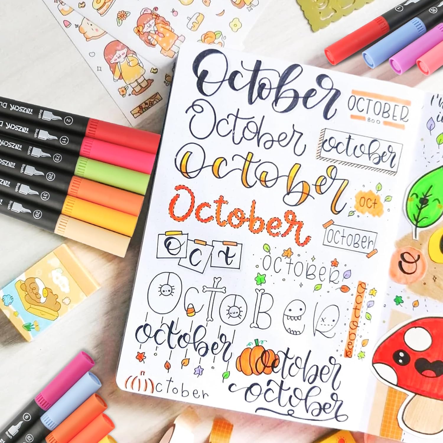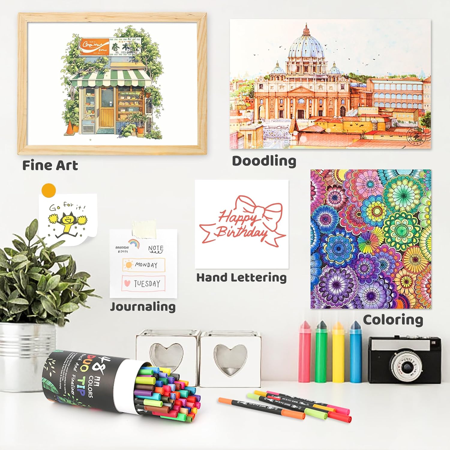 • STAY NICE AND ORGANIZED GREAT GIFT: Our Duo tip marker pens organized in the included container! Wonderful Gift for Birthday, Graduation, Halloween, Christmas, Thanksgiving day or anyone who loves drawing, painting, sketching, writing, journaling, brush lettering, crafting, doodling, watercolor painting, illustrations.