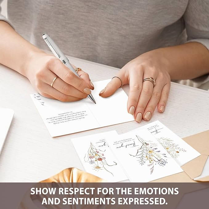 • Customer Service - Buy our floral funeral thank you cards with confidence because we have customer service ready to answer. Our cards are protected in a hard case, ensuring the card, envelope and sticker are protected from damage. If you receive any damaged product, please let me know about it and we will replace it as soon as possible.