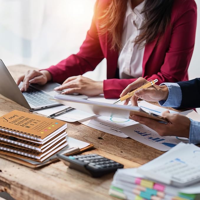 • Reliable Material: our inspirational spiral notebooks boast a robust kraft paper cover, durable and resistant to wear, which adequately protects the pages within; The ballpoint pens are made from sustainable bamboo, offering not only a comfortable writing experience but an ideal use, contributing to the care of our planet