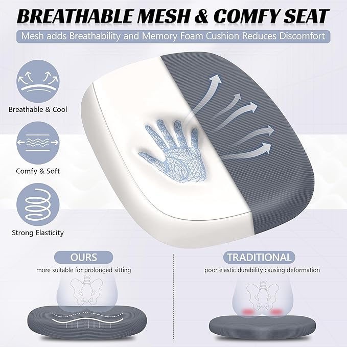 • Breathable & Soft: Imagine sinking into an mesh office chair that feels like sitting on a cloud. Breathable mesh helps with air circulation, and a soft and high rebound cushion, achieves a perfect combination of breathability and comfort, staying cool and comfortable even during the longest working hours.