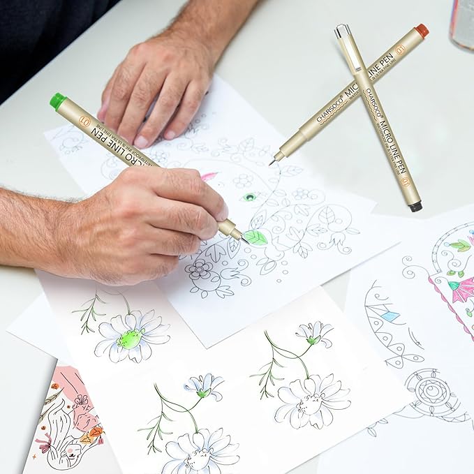 • 【Premium Craftsmanship】Crafted with meticulous attention to detail, these micro inking pens prevent bleeding, are odorless, and resist fading, guaranteeing the durability of your notes or artworks. Their ergonomic round barrels provide comfortable grips for extended use.