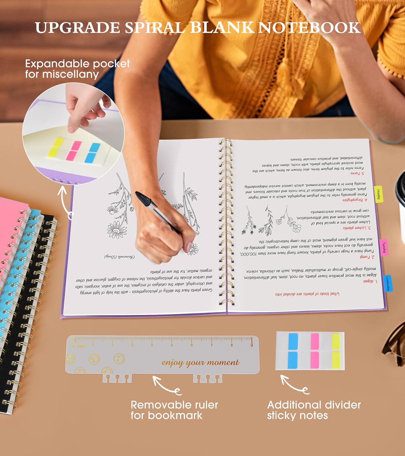 • 【A4 Blank Spiral Journal Notebook】 Large a4 size 8.5"x11" blank notebook, standard 7mm space classic sketch book journals. The professional sturdy water-resistant plastic hard cover will protect your notebooks to last for years, which has oil-resistant and anti-bending properties, effectively protecting the internal paper of the journal and provides a comfortable writing surface.