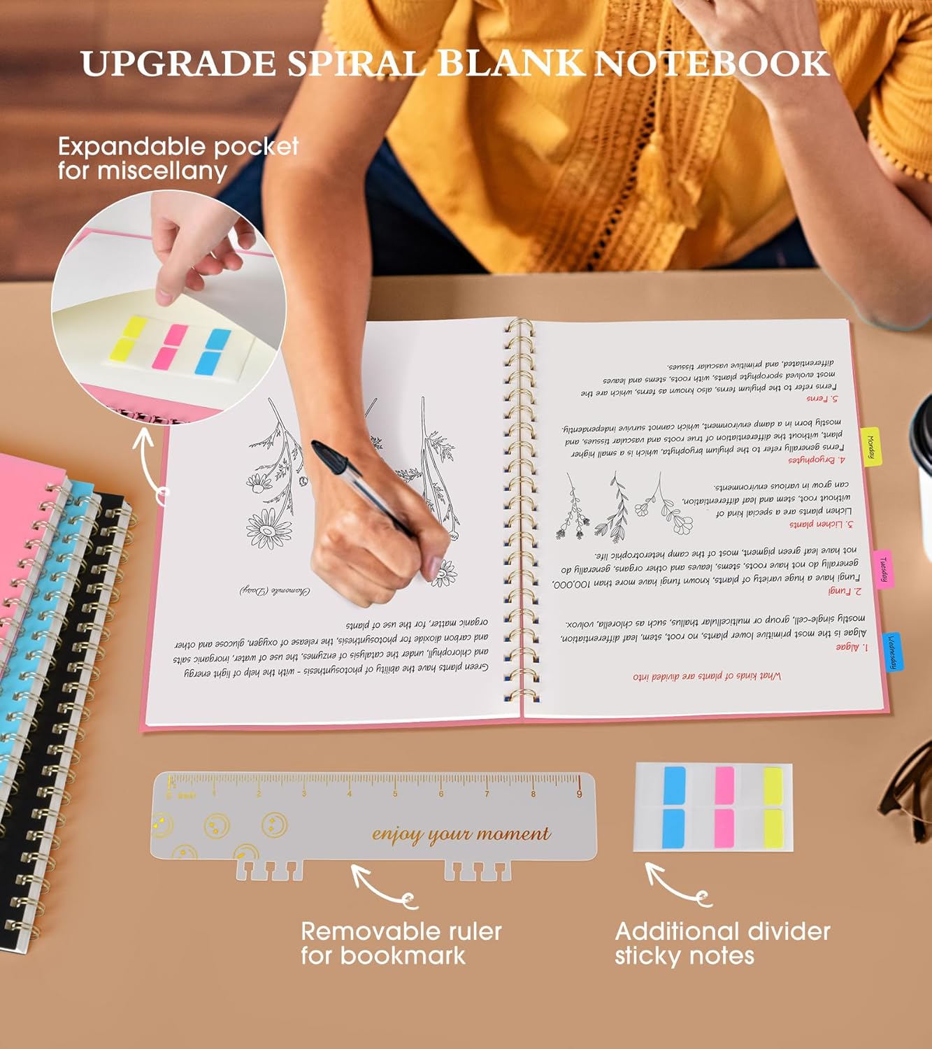 • 【Strong Spiral Metal Twin-Wire】 Our spiral sketchbook notebook has a sturdy gold-color double wire spiral with easy-to-turn pages and keeps pages attached reliably, while still staying flat when opened, which reading more convenient and taking notes more efficient. Spiral bound notebook easy to tear-off and fold over, as well as flip the cover back, giving you a better sketch book experience. Golden spiral bound adds aesthetic matching, it’s the perfect big notebook for journaling, drawing.