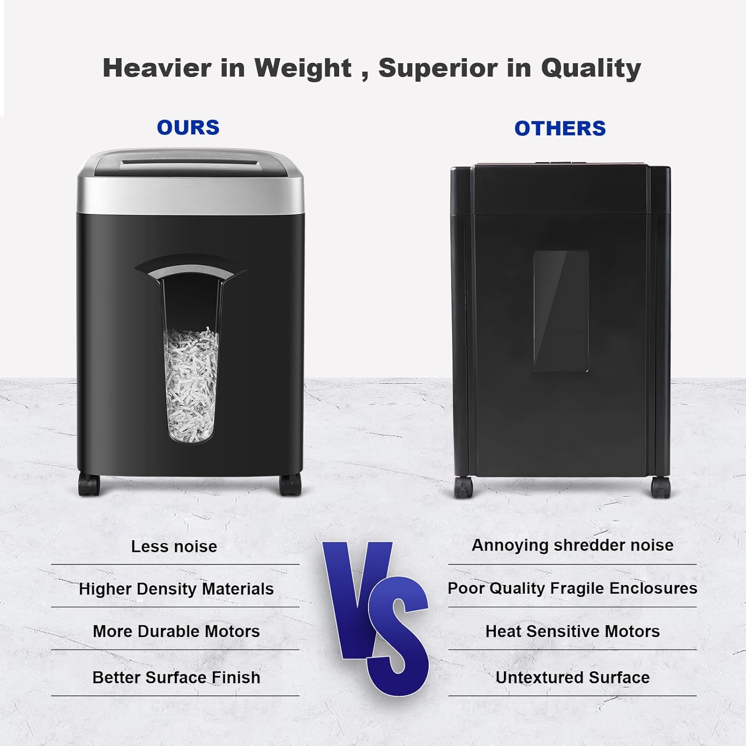 • 【Heavy-Duty 15-Sheet Capacity with P4 Security】Effortlessly destroys 15 sheets (80g Letter/A4) per pass into confidential 4x36mm particles (P4 security certified), eliminating sensitive data while chewing through staples and credit cards like butter.