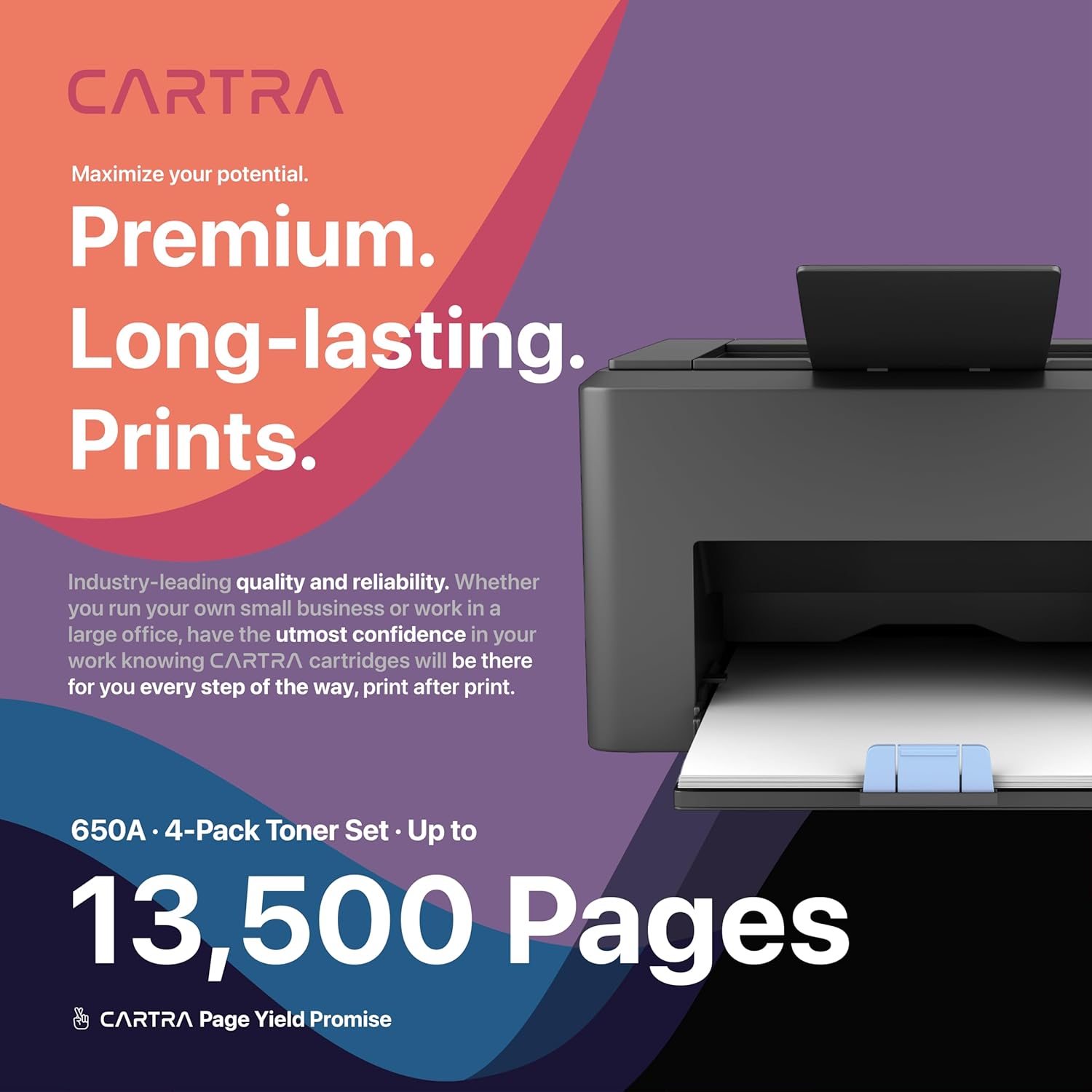 • Feature a sustainable design, made from recycled materials to support green printing. Backed by a California-based support team, CARTRA ensures quick issue resolution and dependable customer satisfaction without compromising quality.