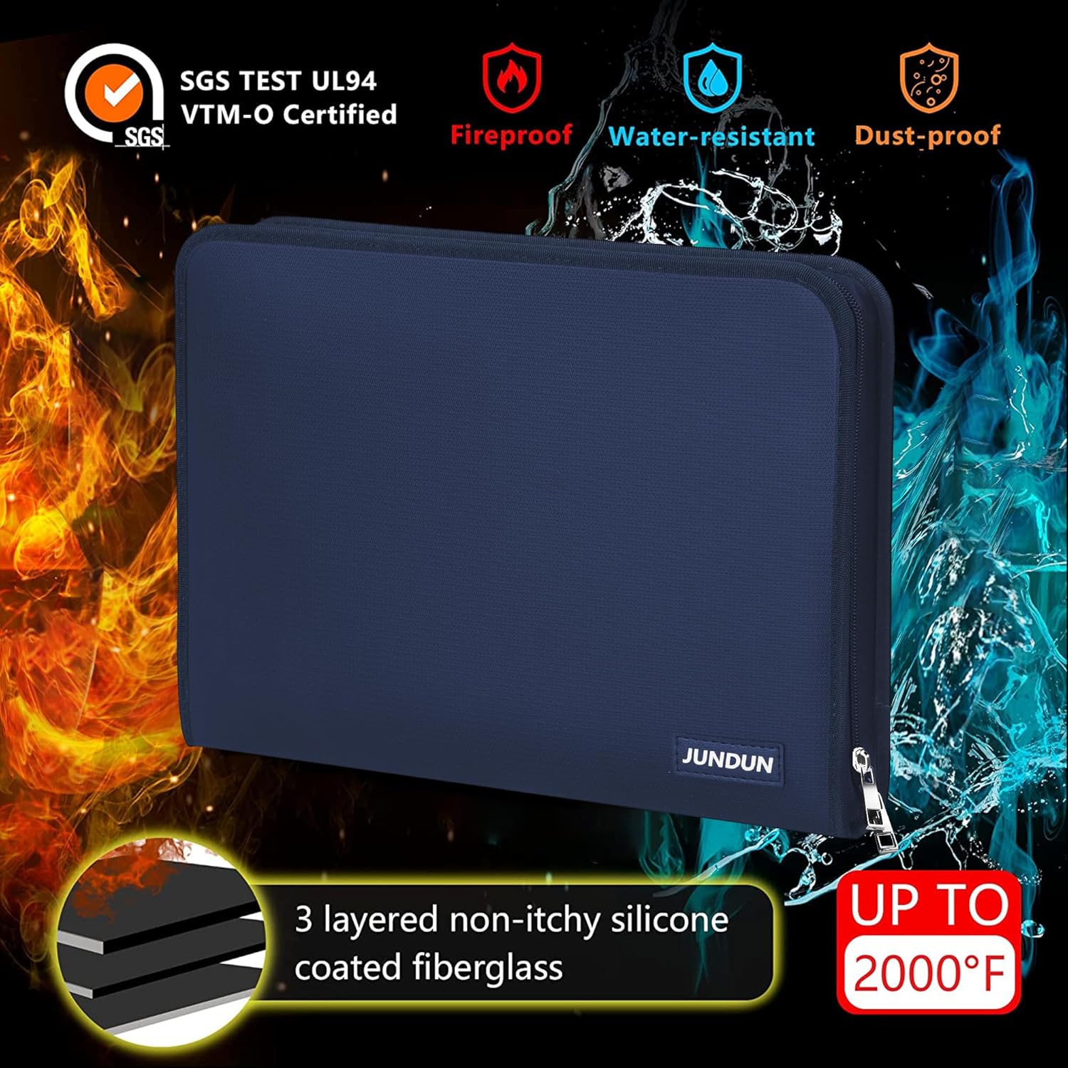 • PREMIUM MATERIALS: Secure your documents with our fireproof file organizer. Crafted from three-layered, non-scratchy fiberglass coated with silicone, it can withstand temperatures up to 2000℉. It's also passed rigorous testing (SGS Test: UL94 VTM-0 Certified) and offers high water-resistance for unexpected spills. Keep files neat and accessible with ease using our accordion file organizer. Elevate your protection today!