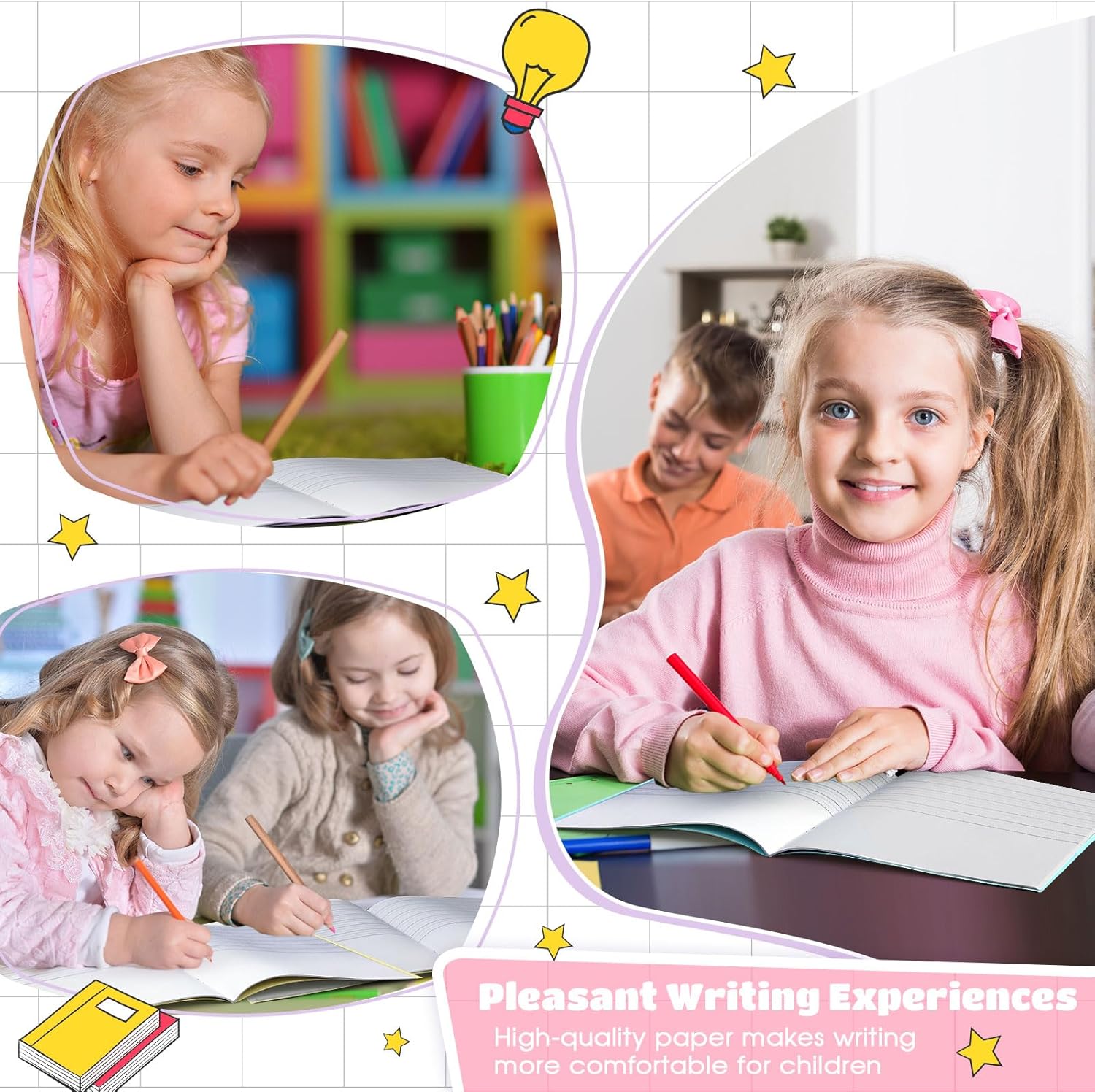 • Quality Paper Material: made of quality paper material, our primary notebook come with soft covers and thick white pages that are sturdy and tear resistant; This ensures long term usage and pleasant writing experiences, prioritizing safety and quality for both kids and students