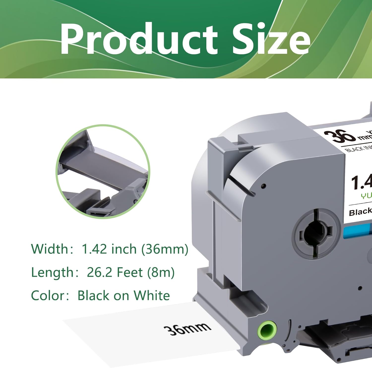 • Product Size: Width: 36mm 1.4 inch, Length: 26.2 feet (8m) for each 36mm 1.4 inch laminated white label tape