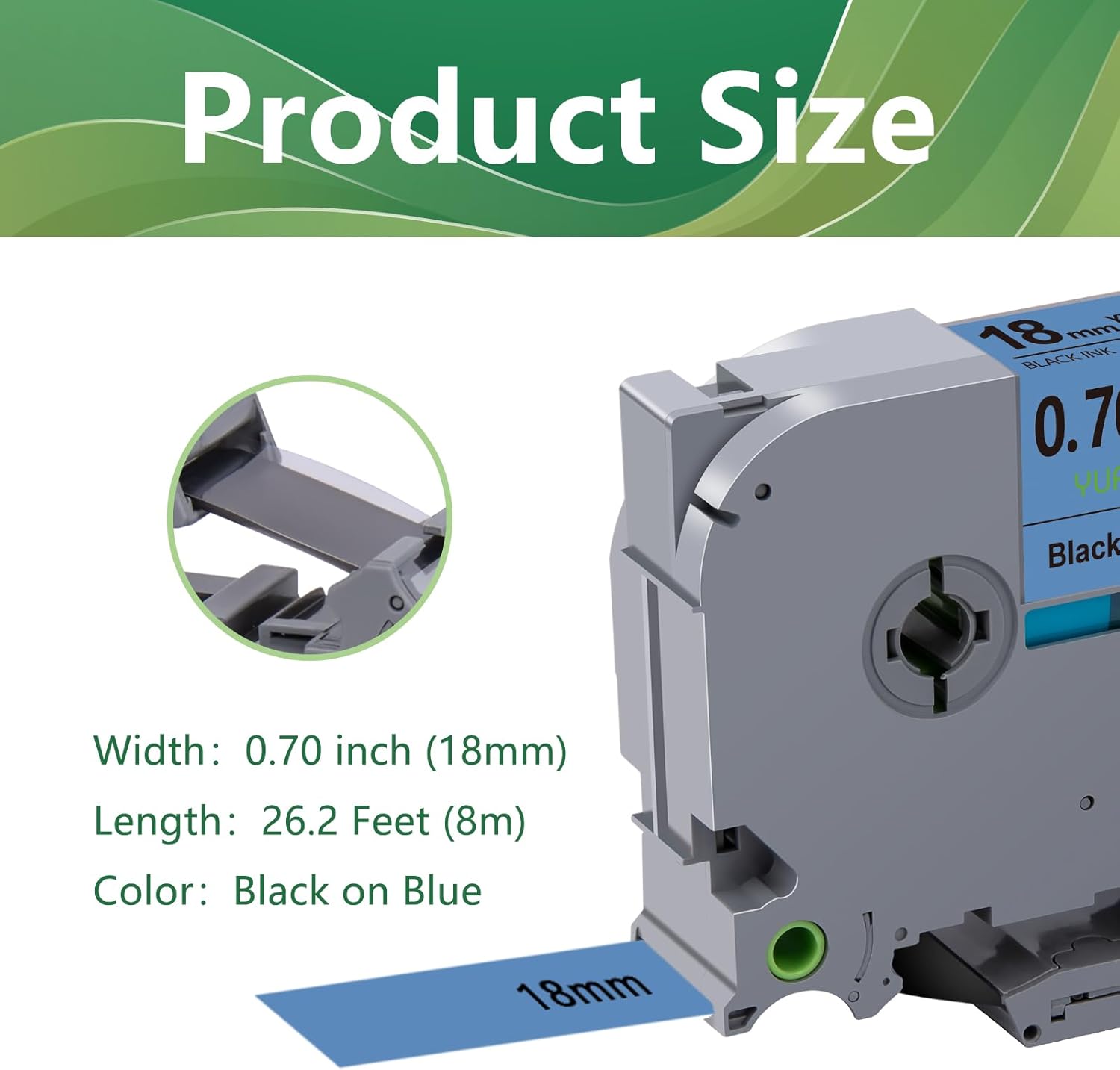 • Product Size: Width: 18mm 0.7 inch, Length: 26.2 feet (8m) for each 18mm 0.7 inch laminated blue label tape