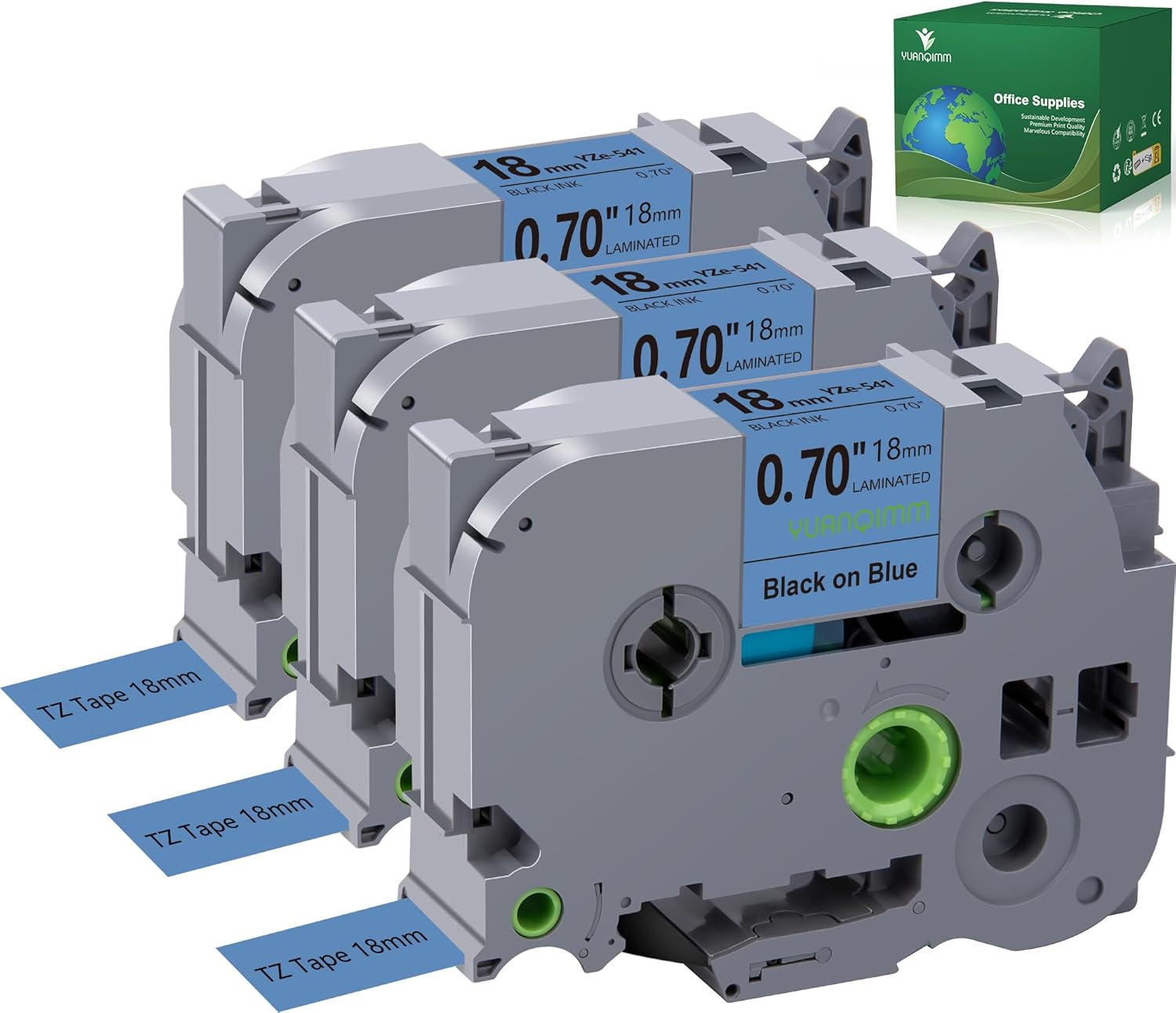 • Package included: 3-Pack Compatible with Brother PTouch TZe-541 TZ-541 TZe541 TZ541 18mm 0.7 Inch Black on Blue Label Maker tape