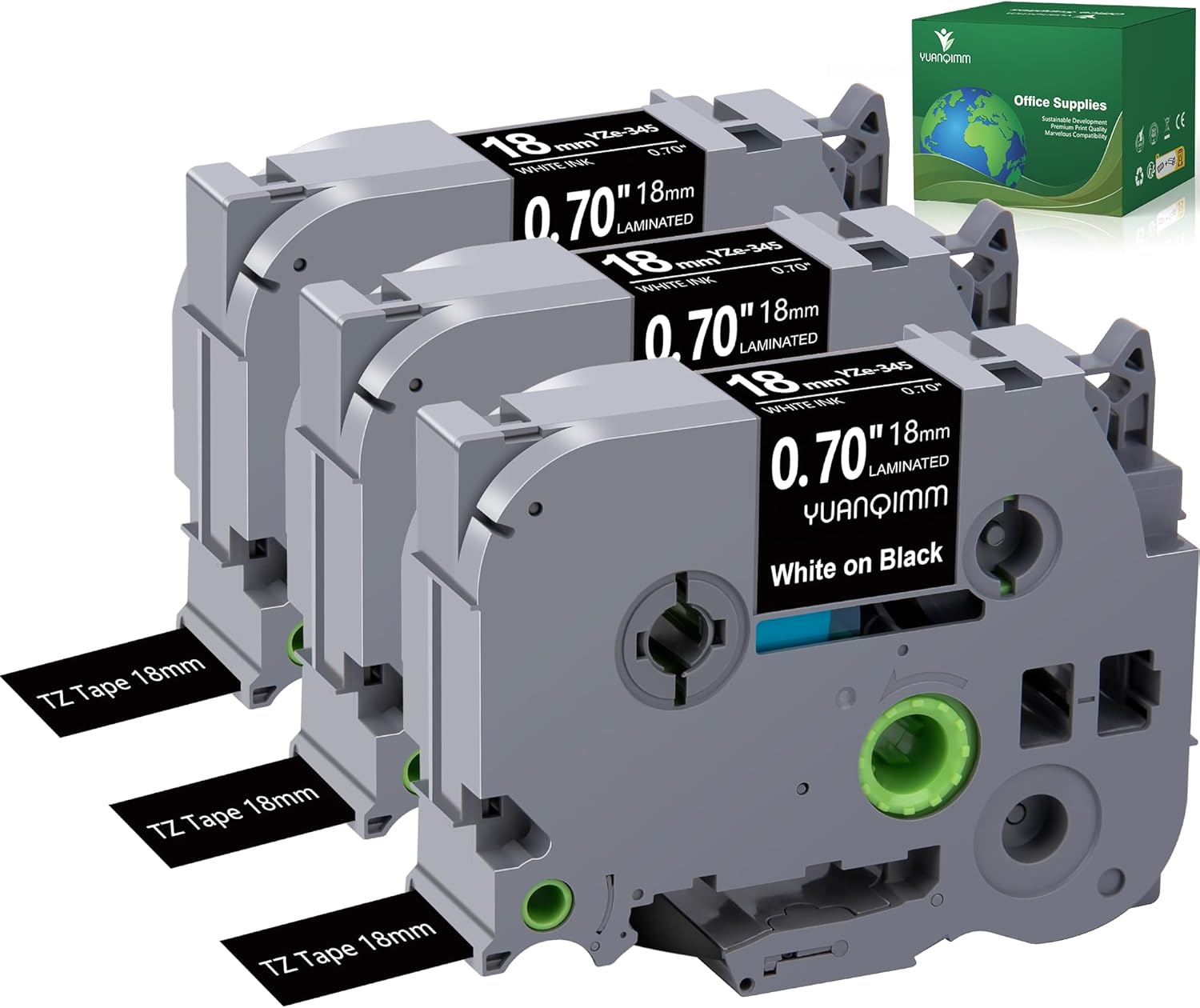 TZe-345 18mm TZe TZ Black Label Tape Compatible with Brother P Touch Label Maker Tape TZ-345 TZe345 TZ345 Label Tape 18mm 0.7 Laminated White on Black for PTD400 PTD410 PTD600, 3-Pack