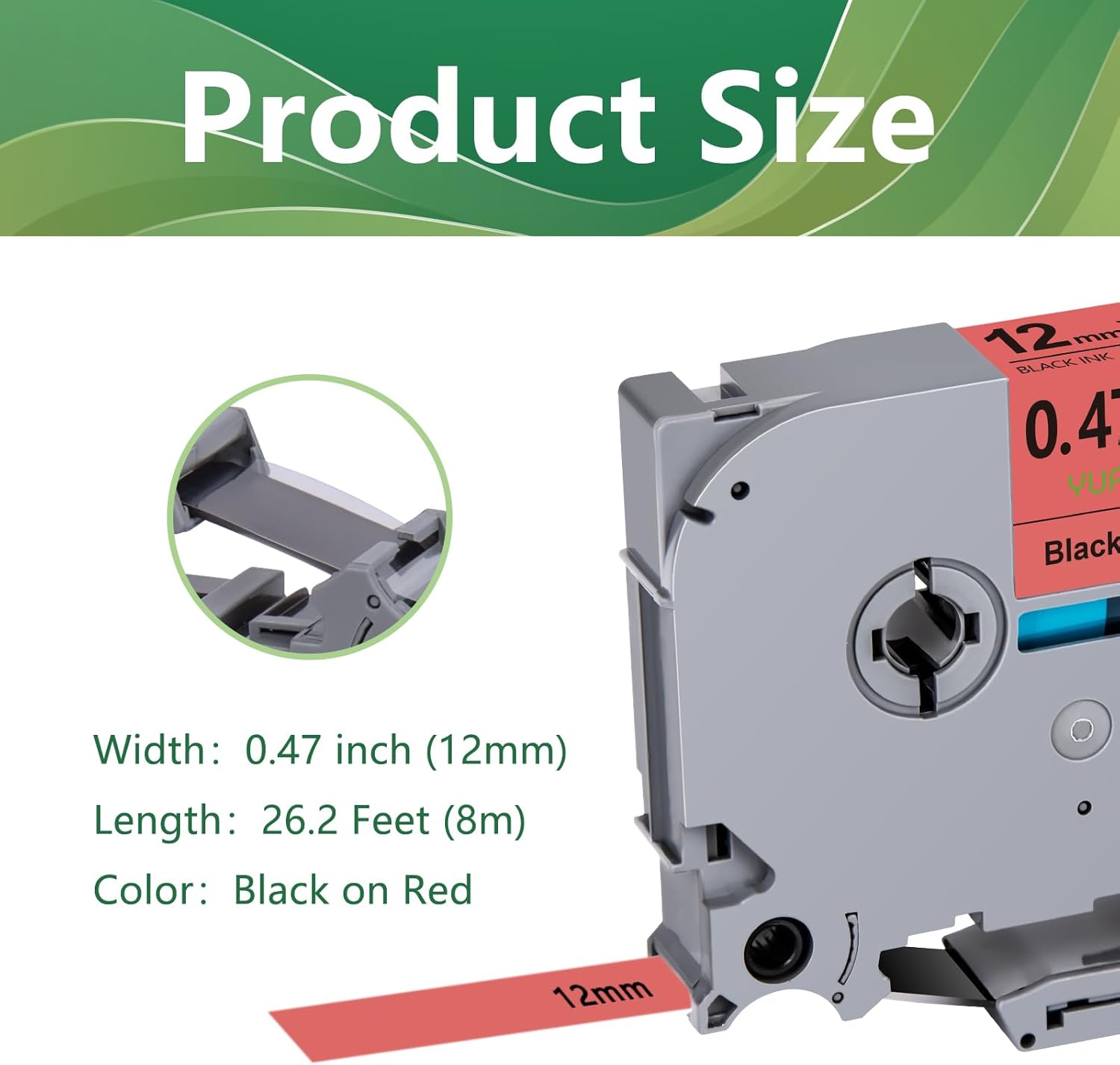 • Product Size: Width: 12mm 0.47 inch, Length: 26.2 feet (8m) for each 12mm 0.47 inch laminated red label tape