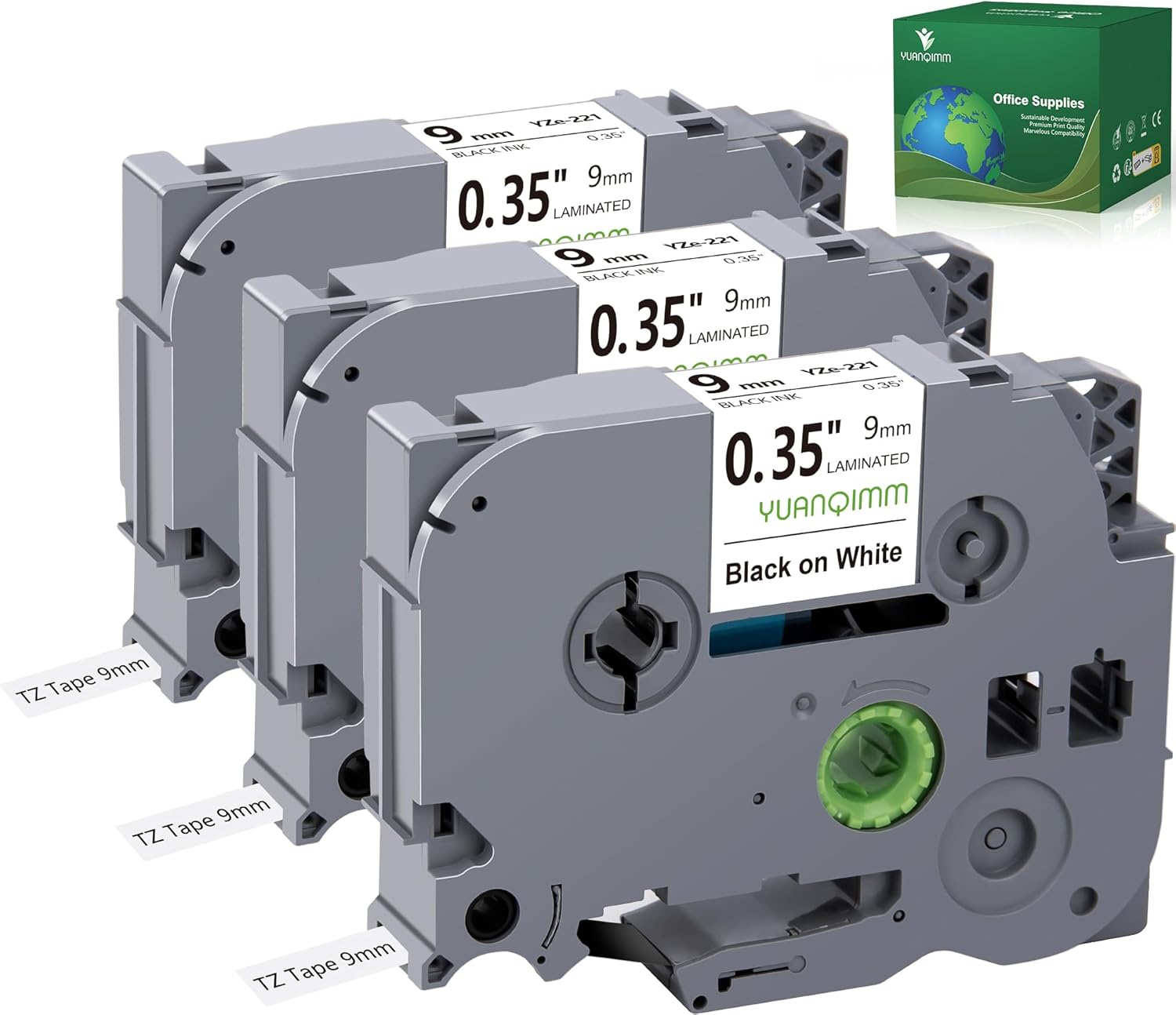 TZe-221 9mm Laminated White TZ Tape Compatible with Brother TZe221 TZ221 TZ-221 Replacement for Brother PTouch 9mm 0.35 Label Tape for PTH100 H110 D400AD D210 1290 Printers, 3-Pack