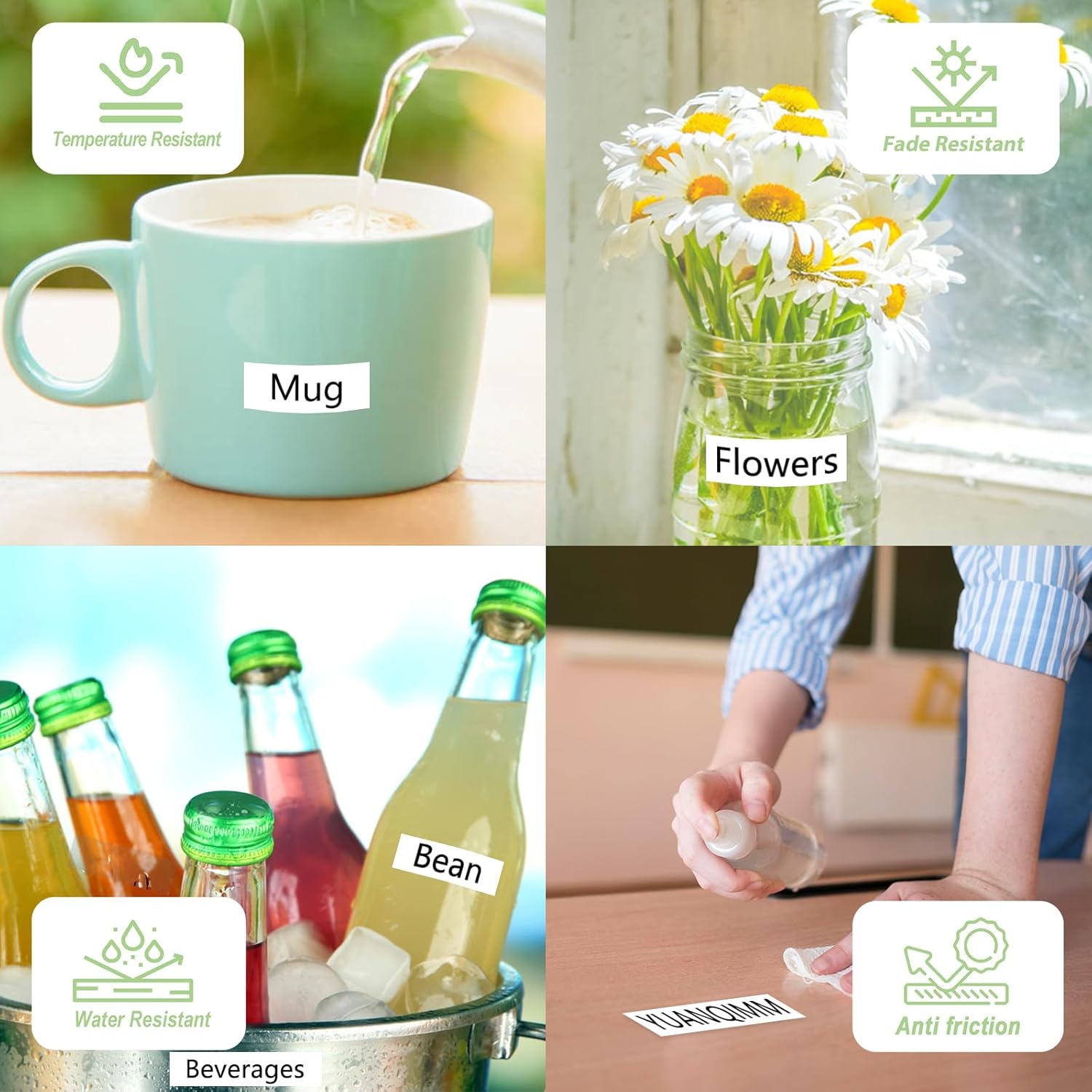 • Features: easy to peel water resistant fade resistant temperature resistant corrosion resistant abrasion resistant grease resistant grime resistant no sticky residue chemical resistant