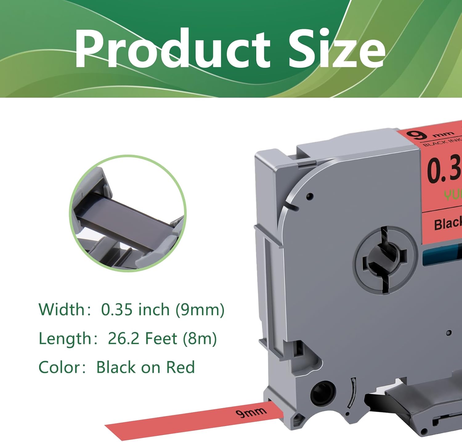 • Product Size: Width: 9mm 0.35 inch, Length: 26.2 feet (8m) for each 9mm 0.35 inch laminated red label tape