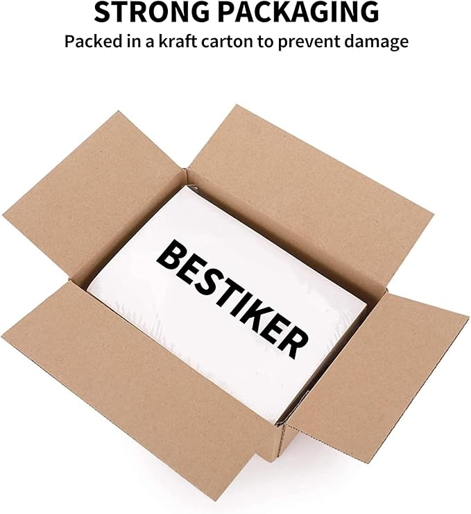 • ✅[ Customizable Adhesive Paper ] Full sheet label paper white gives you the freedom to design stickers in different sizes and shapes. Great for DIY personalized stickers for car bumpers, glasses, bottles, Laptops, laptops, and more. Adhere to metal, plastic, glass, tin, paper, cardboard, corrugated boxes, envelopes, plastic bags, and more.