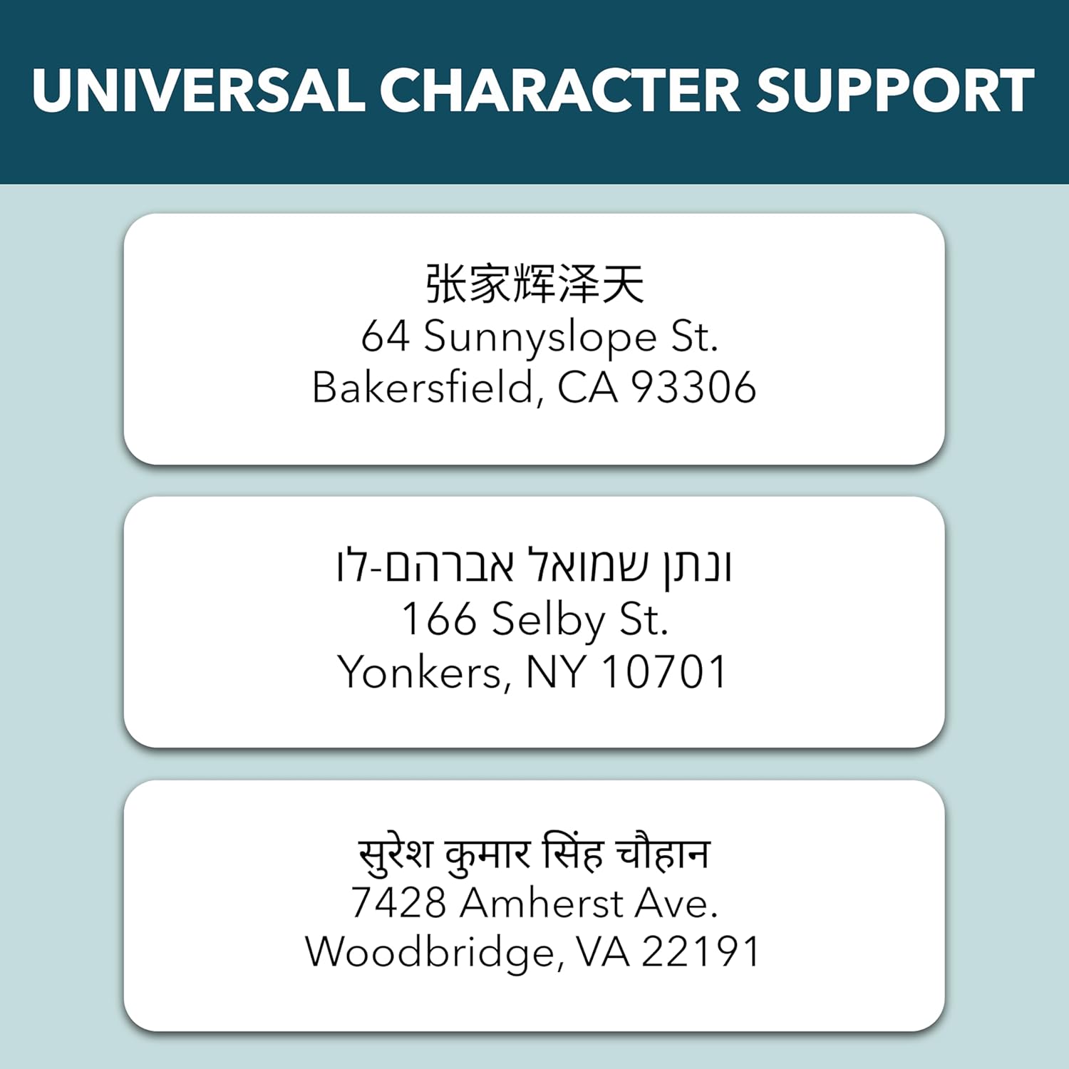 • UNIVERSAL CHARACTER SUPPORT - We support all foreign and English characters, allowing you to personalize each label with your unique name and address, no matter the language.