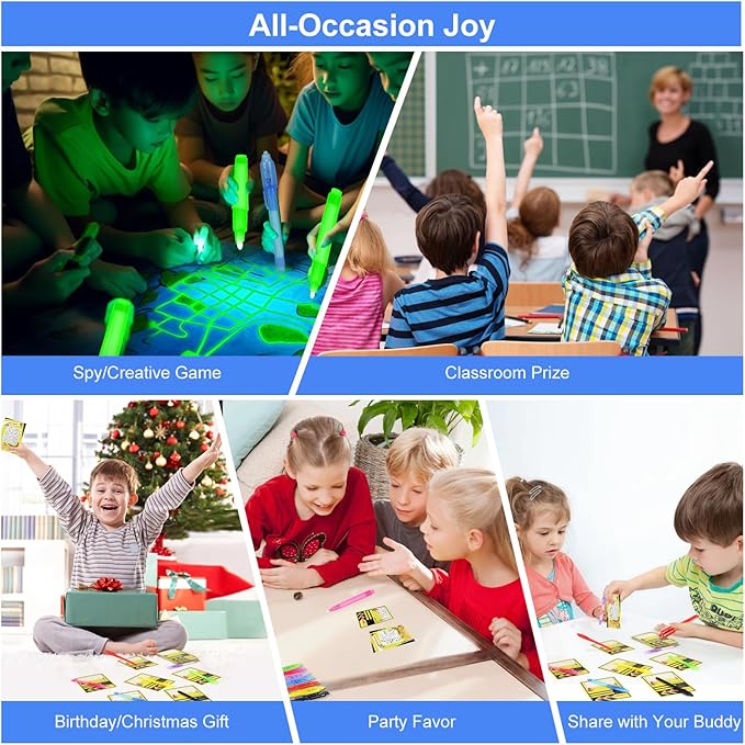 • All-Occasion Gift Set: A hit at birthday parties, Valentine's Day, Classroom prize, Halloween treats, or Christmas stocking stuffers, Goodie bag stuffers, these UV pen sets are the go-to for educational and fun party favors.