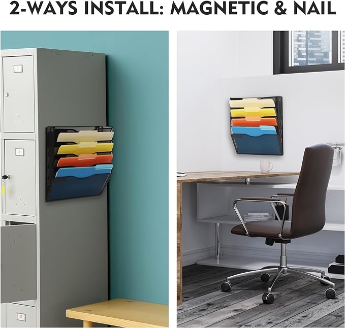 • 5 Pockets: The magnetic wall file organizer comes with mounting screws that can be easily mounted on the wall