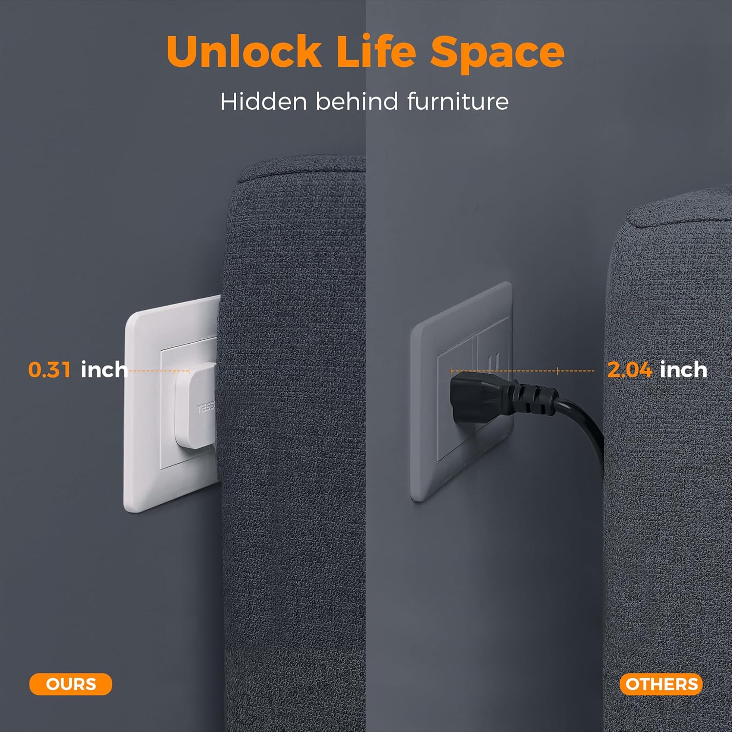 • Flat Extension Cord 10 Ft: Extra long 10ft extension cord can more flexibility to reach distant outlets and hard to reach places; flat cord can easily run along the wall, floor or under carpet without causing a bulge, protect your family from tripping, makes sweeping and mopping easier