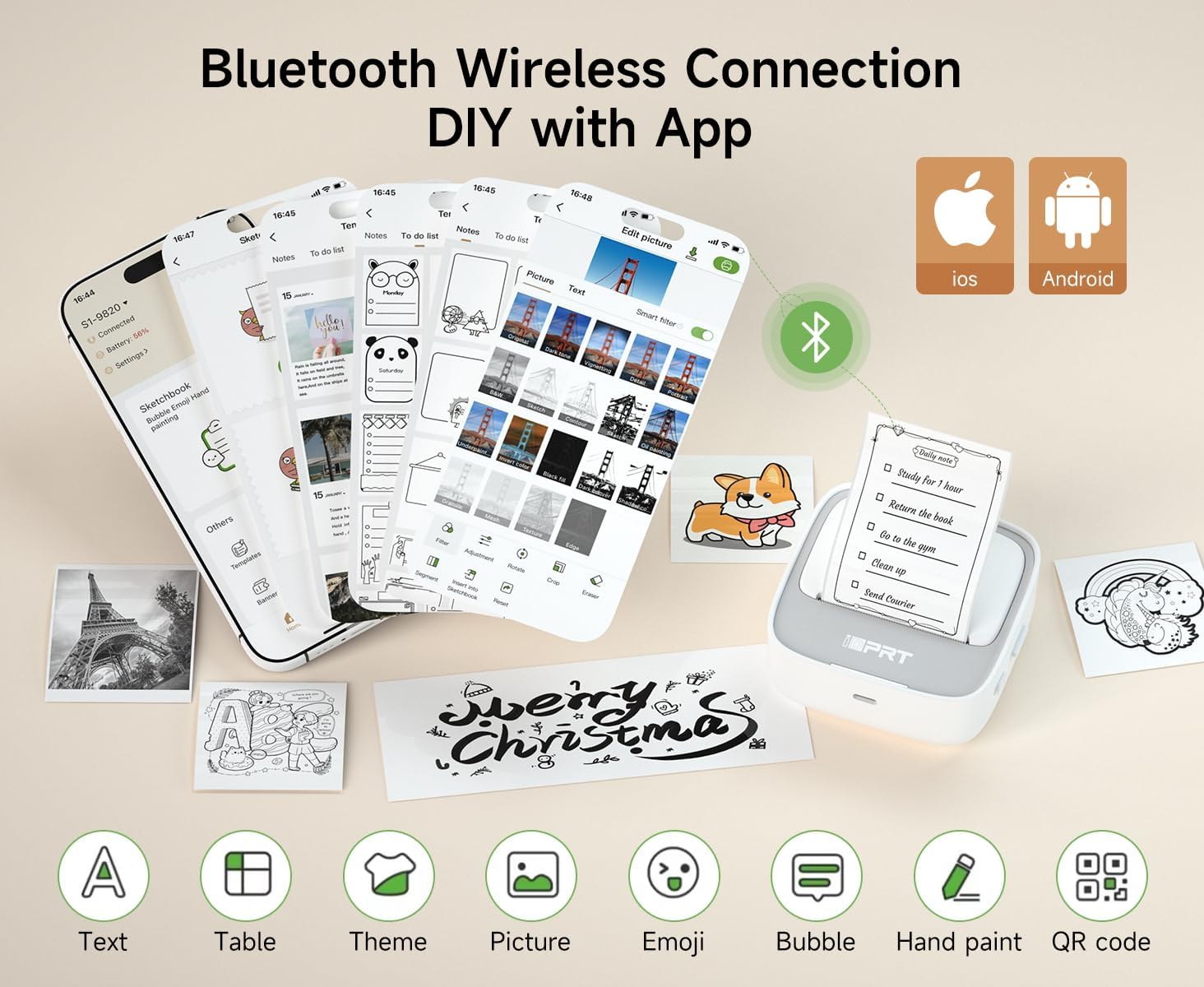 • Customized Label Printing: With our Mini Printer, you can easily customize your labels and stickers to suit your needs. Simply connect to the printer and let your creativity take over