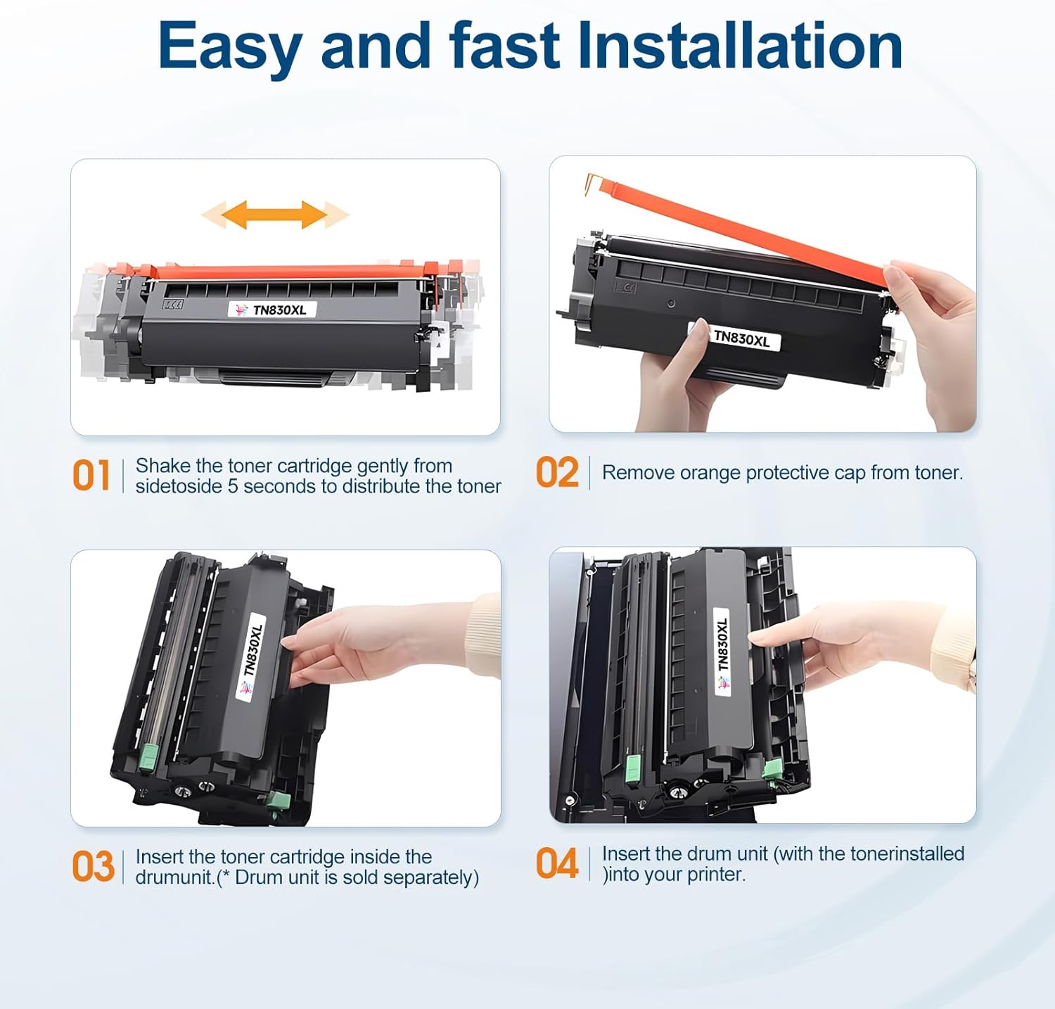 • ★ With New Chip: Compatible High Yield Toner Cartridge For Brother TN830XL TN830 XL 830XL Toner Cartridge--The TN830XL toner equips the latest upgraded chip to ensure it can fully compatibility with your printer