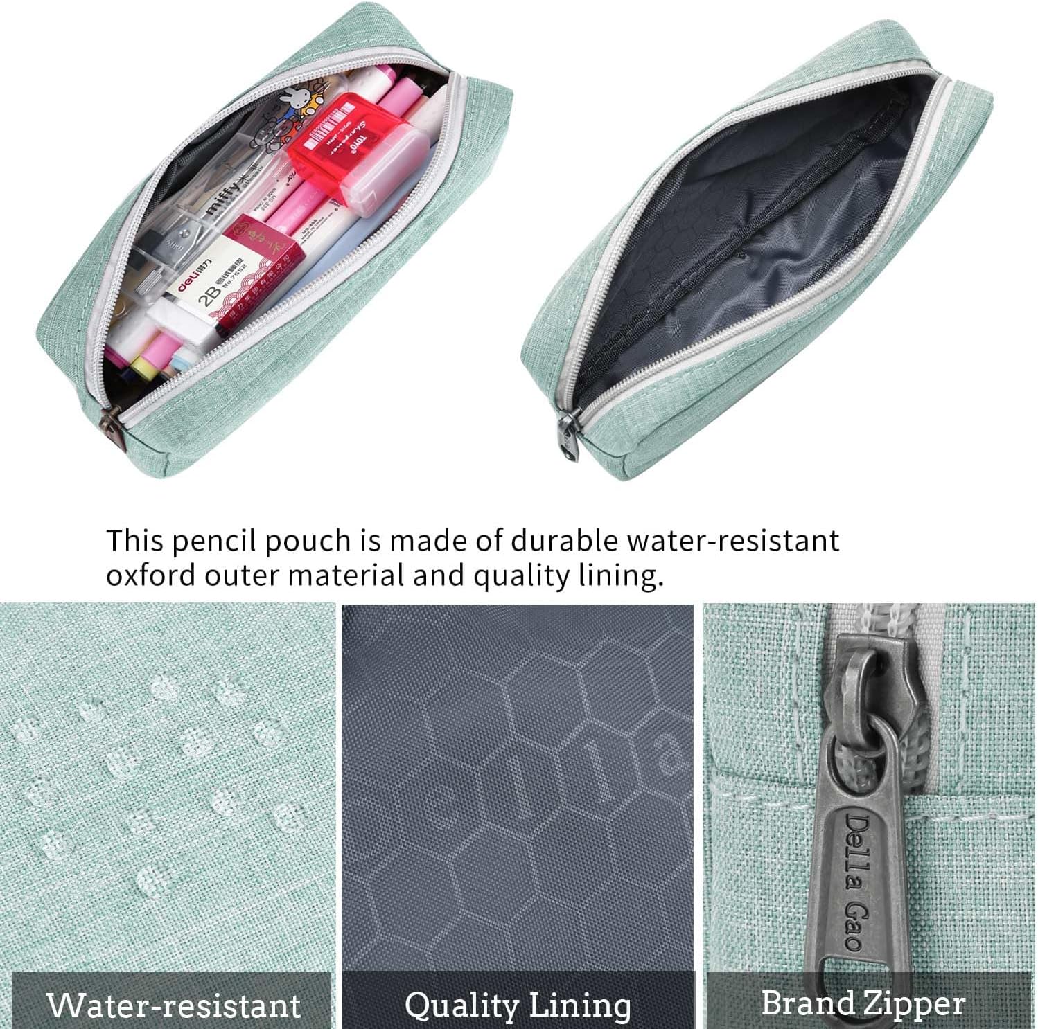 Della Gao Small Pencil Case Large Capacity Pencil Pouch Marker Pen Bag Coin Pouch Office Stationery Organizer (Green)