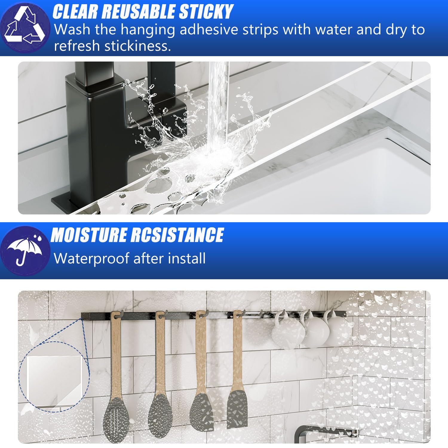 • 【Removable&No Residue】The removable adhesive strips leaves no sticky residue, Our thick adhesive tape works well on almost any smooth surface, such as walls, wood, ceramic, tile, glass, mirror, metal, plastic, marble, etc.