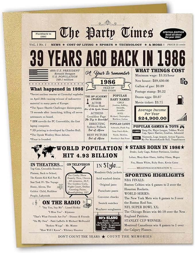 • 【Product Size】A 10.6 x 7.9 inches 39 year old birthday card stands out for its oversized size. It comes with an envelope for easy mailing or gifting.