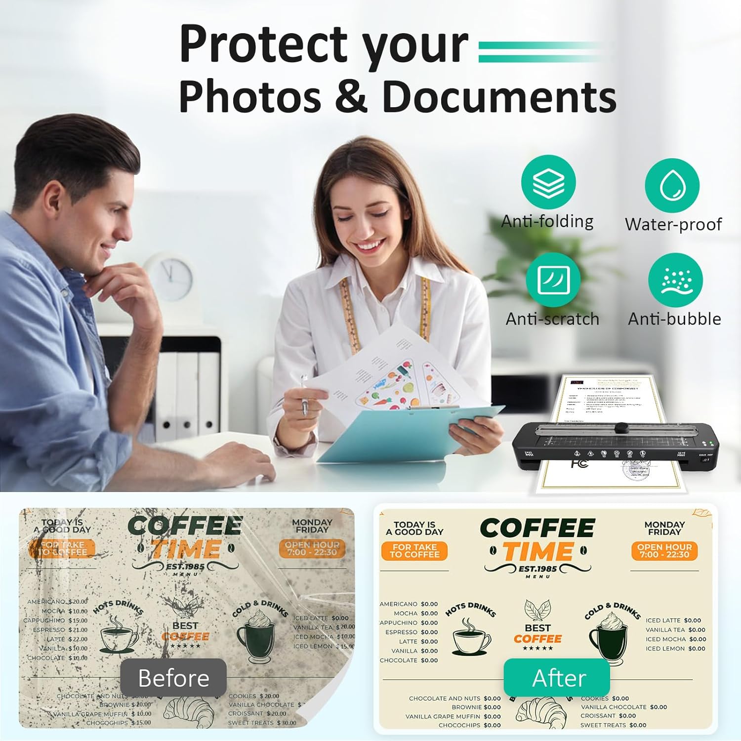 • Warm-Up for Fast Laminating: A3 laminator machine with laminating sheets heats up in just 95 seconds, allowing you to start laminating instantly. Meet different requirements with faster speed of 355mm/min, which can better improve your work efficiency. Take your projects to the next level and revolutionize your laminating experience.