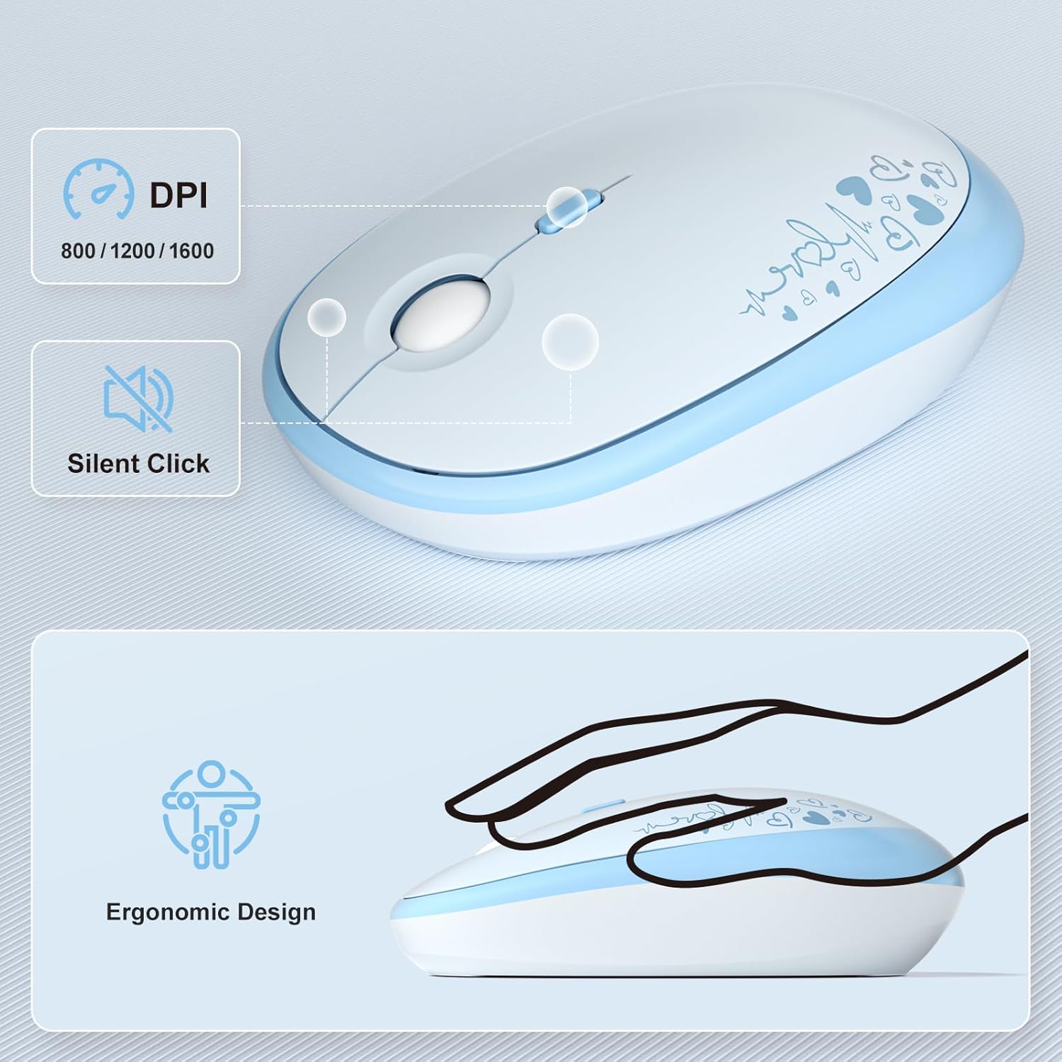 • Cute Wireless Keyboard and Mouse: Colorful aesthetic design retro typewriter keyboard with round keycaps, and with ergonomic foldable stand and anti-slip pad ensures comfortable typing. Quiet mice with 3 sensitivity levels (800/1200/1600) provides precise control.